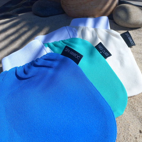 Der FIRST CLASS Peelinghandschuh von SPA MAROC ist die Luxusvariante des traditionellen Hammam-Peelinghandschuh. Er fasziniert durch seine hervorragenden Peelingeigenschaften in Kombination mit seiner angenehm weichen Textur. Schonend, einem Radiergummi gleich, löst er Schmutz und abgestorbene Hautzellen (Peeling), ohne die Haut dabei zu kratzen oder zu verletzen. Die Haut wird samtig weich, gut durchblutet und kann Cremes und Pflegestoffe besonders gut aufnehmen. So kann sie sich regenerieren, toxische Stoffe besser ausscheiden und ist weniger anfällig für Krankheiten. Durch die Massage wird das Bindegewebe durchblutet und gestrafft.